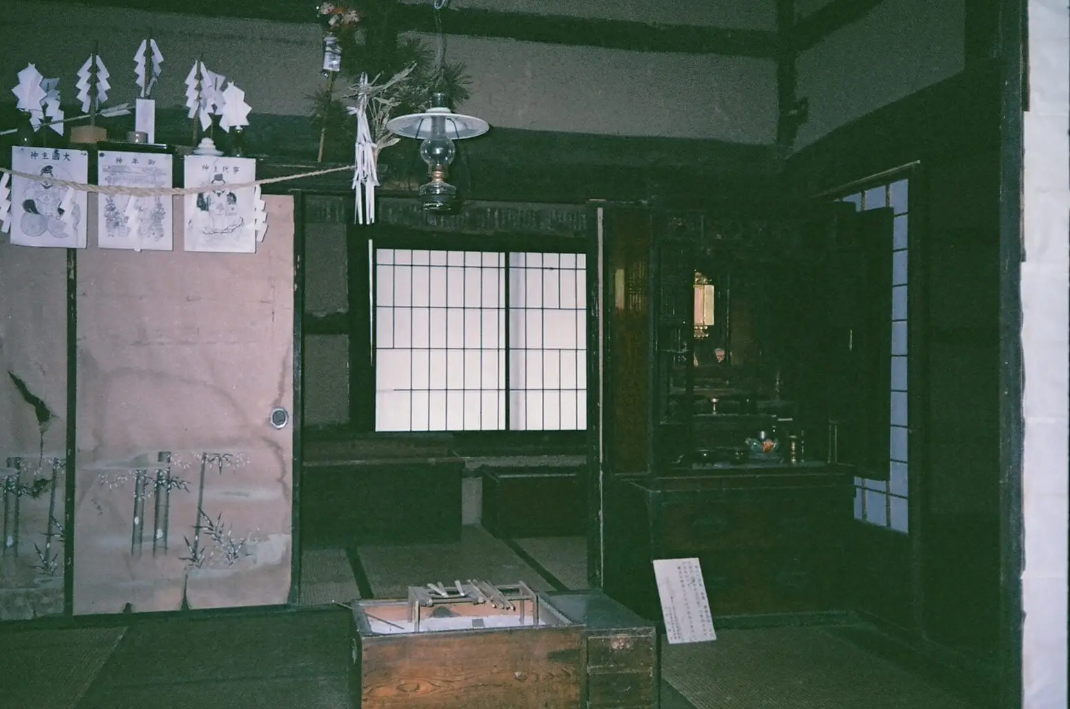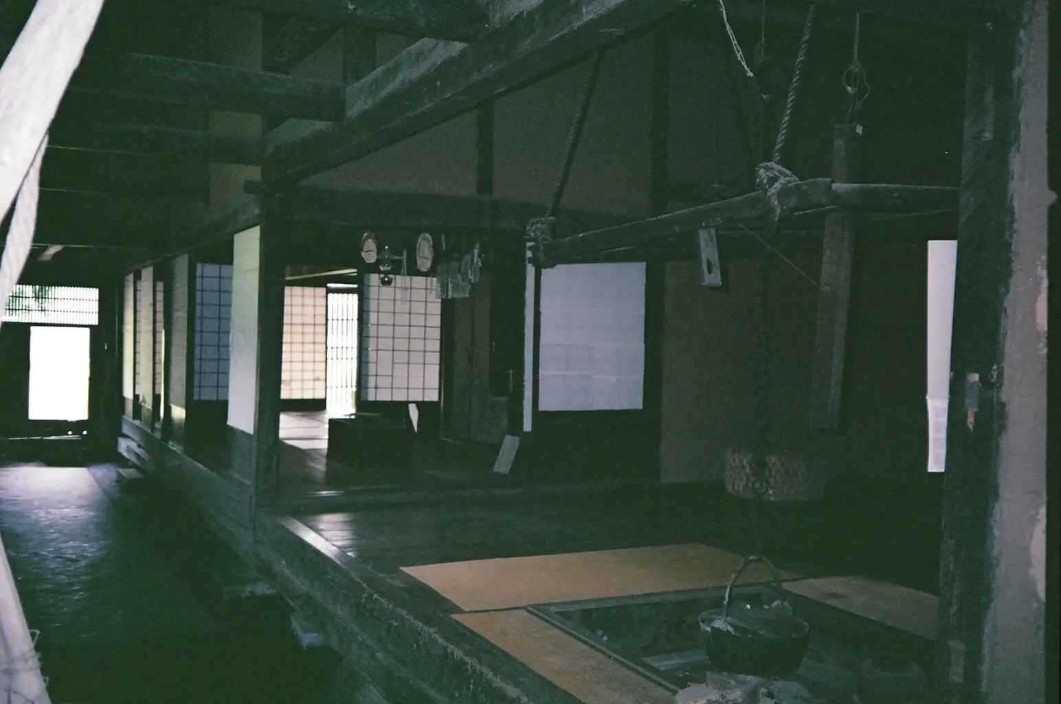 囲炉裏があるのは写真手前(家の一番奥)の部屋で、2階への階段は玄関から入ってすぐの部屋にある。