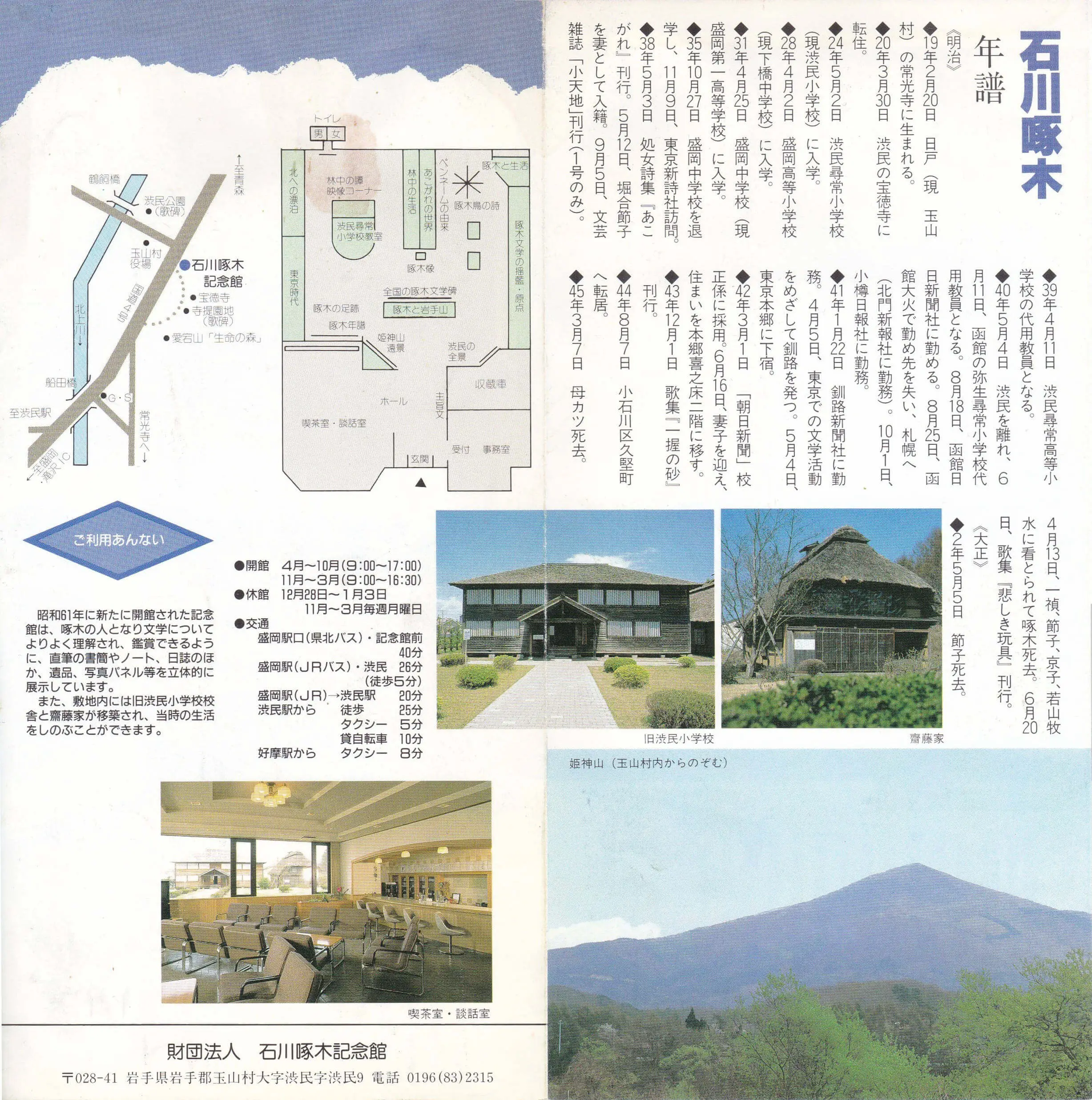 さすがに記念館内部は撮影禁止だから、パンフレットをスキャンしてPDFにしてみたので、当時の石川啄木記念館の雰囲気を見ていただきたい。