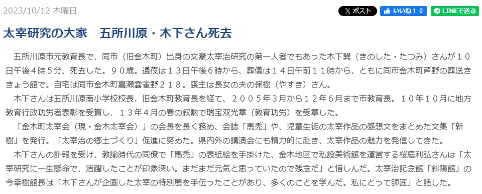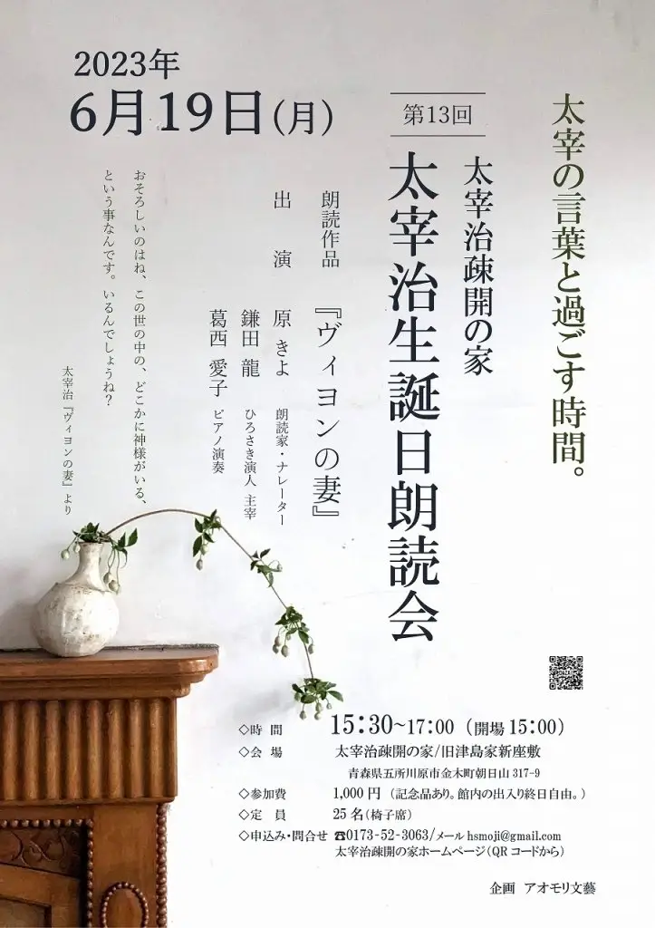タグ:太宰治アーカイブズ, 太宰治関連資料, 2023(令和05)年, 青森県近代文学館, 太宰治まなびの家, 三鷹の此の小さい家, 田中英光, オリムポスの果実, 太宰治賞, 津軽カタリスト, PARCO劇場, 久留米シティプラザ, 森ノ宮ピロティホール, ひろさき演人, 葉桜と魔笛, 太宰治生誕日朗読会, さよならだけが人生だ, 井伏鱒二, 林芙美子, 弘前大学, 太宰治記念「津軽賞」, 陸奥新報, 東奥日報, 津島雄二, 桜花浪漫堂, 大人のための朗読会